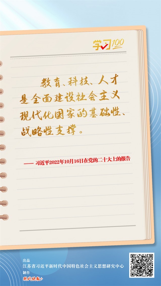 教育、科技、人才是全面建設社會主義現(xiàn)代化國家的基礎(chǔ)性、戰(zhàn)略性支撐。必須堅持科技是第一生產(chǎn)力、人才是第一資源、創(chuàng)新是第一動力,深入實施科教興國戰(zhàn)略、人才強國戰(zhàn)略、創(chuàng)新驅(qū)動發(fā)展戰(zhàn)略,開辟發(fā)展新領(lǐng)域新賽道,不斷塑造發(fā)展新動能新優(yōu)勢。