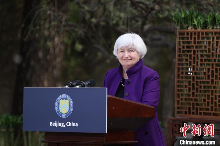 4月8日,美國財政部長耶倫在北京表示,美中兩國經濟關系緊密,健康的經濟關系將為兩國帶來顯著益處,穩定的雙邊經濟關系是兩國的共同期望。 中新社記者 蔣啟明 攝
