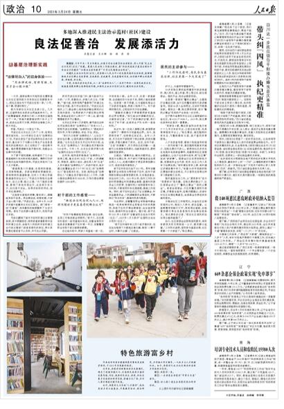 編者按:今年中央一號文件提出,加強鄉村法治教育和法律服務,深入開展“民主法治示范村(社區)”創建。最高人民法院工作報告提出,要“積極促進城鄉基層治理和平安法治鄉村建設”“加強法治宣傳教育”“引導全民增強法治觀念”。