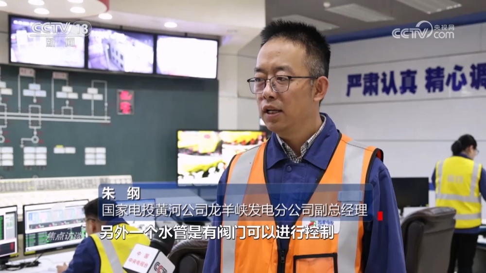 國家電投黃河公司龍羊峽發電分公司副總經理朱綱:“一個水池有兩個進水管,一個水管沒有閥門不能控制,另外一個水管有閥門可以進行控制。這時候控制能調節、有閥門的水管來進行調節,使得總入水池里的水始終是恒定的。”