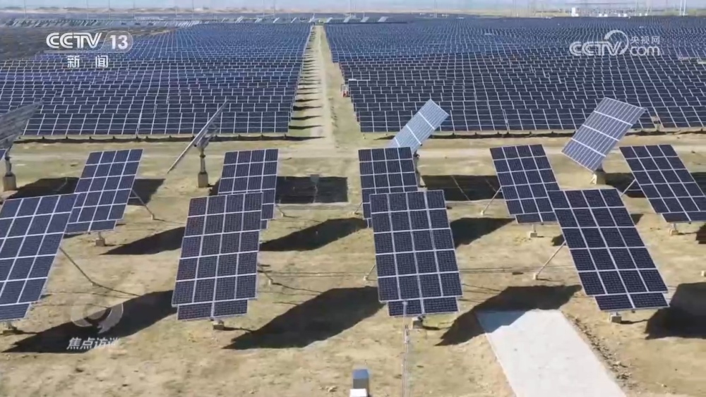 上萬只羊淹沒在上千萬塊光伏發電板中安靜地吃草,誰能想到,在這安靜之下,在這片藍色海洋之下,巨大的能量以電力的形式源源不斷產生,能量之大,年發電量足夠滿足340萬個家庭全年用電。