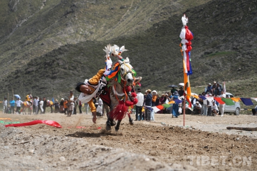 圖為拉薩市曲水縣曲水鎮曲甫村舉辦的“熱烈慶祝西藏自治區成立60周年暨賽馬節活動”現場,此活動也是望果節活動的一部分 攝影:王茜