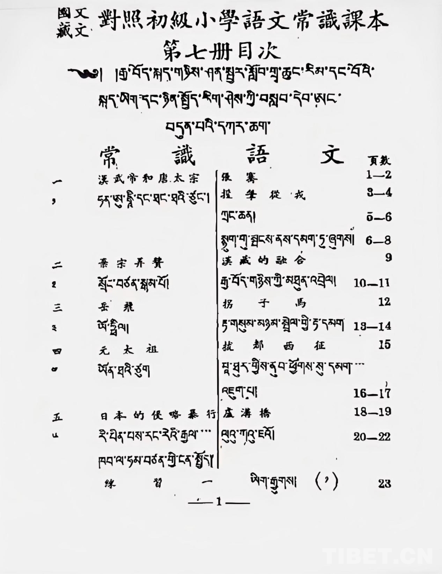 圖為邊疆地區語文課本,內容涉及到抗戰內容和中國歷史名人(喜饒尼瑪提供)