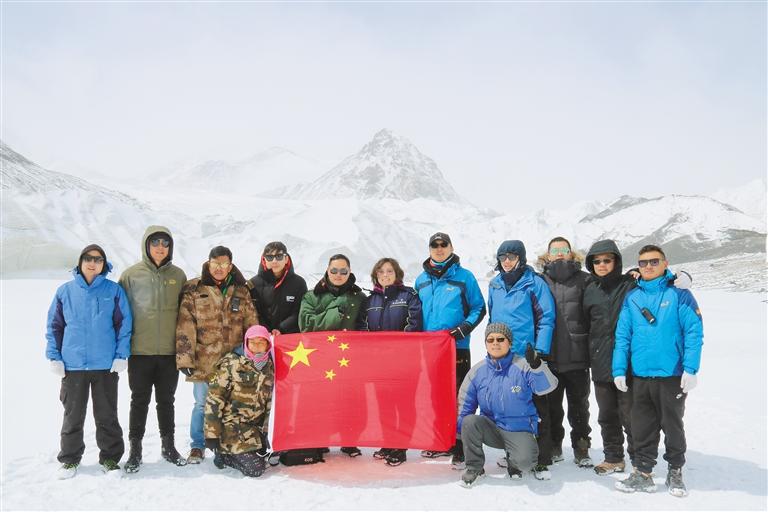 監測科研人員在格拉丹東檢測點合影留念。