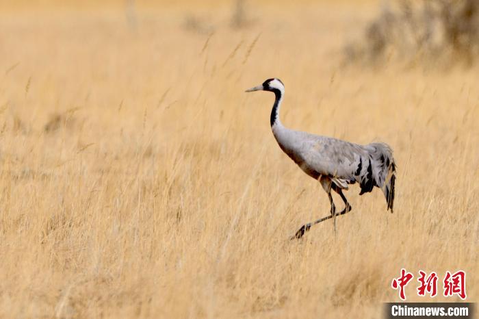 圖為灰鶴在青海海西蒙古族藏族自治州都蘭縣巴隆地區(qū)“閑庭漫步”。 松太加 攝
