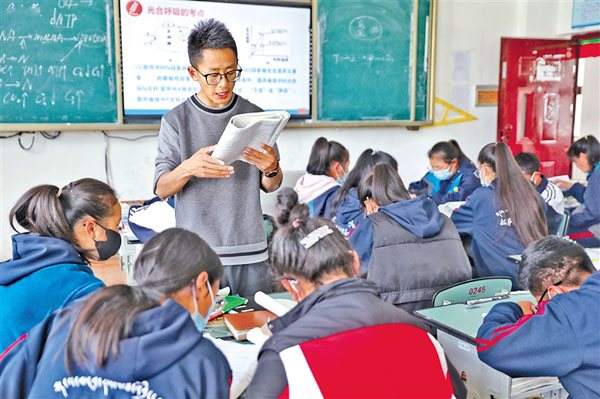 拉薩阿里高中教師次仁頓珠正在給高三學生上課。記者 王莉 實習生 唐曉光 攝