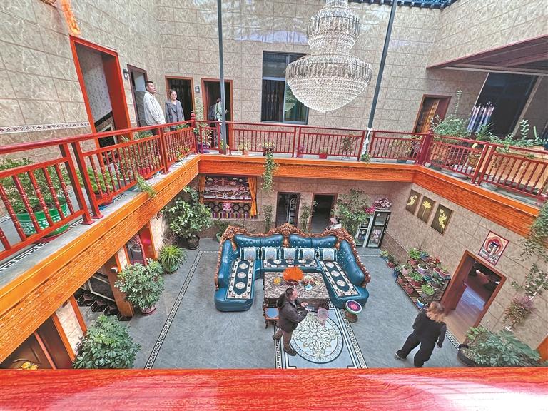 走進次仁措姆家院子里,她正在自家果園采摘剛成熟的石榴,房前的小院里整齊擺放著各種盆栽?!耙郧胺壳拔莺箅s物亂堆,經過整治,空出的地方種上了蔬果,現在家家戶戶都有小果園,多虧了村里的整治行動?!贝稳蚀肽奉I著我們到客廳,指著墻上的“美麗庭院”流動紅旗笑著說:“這面旗是上個月評上的,現在村里都比著搞衛生,誰也不想落后?!?/p>
