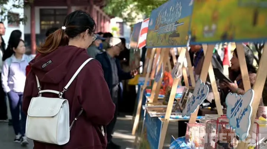 圖為市民游客參觀達孜非遺產品展銷區
