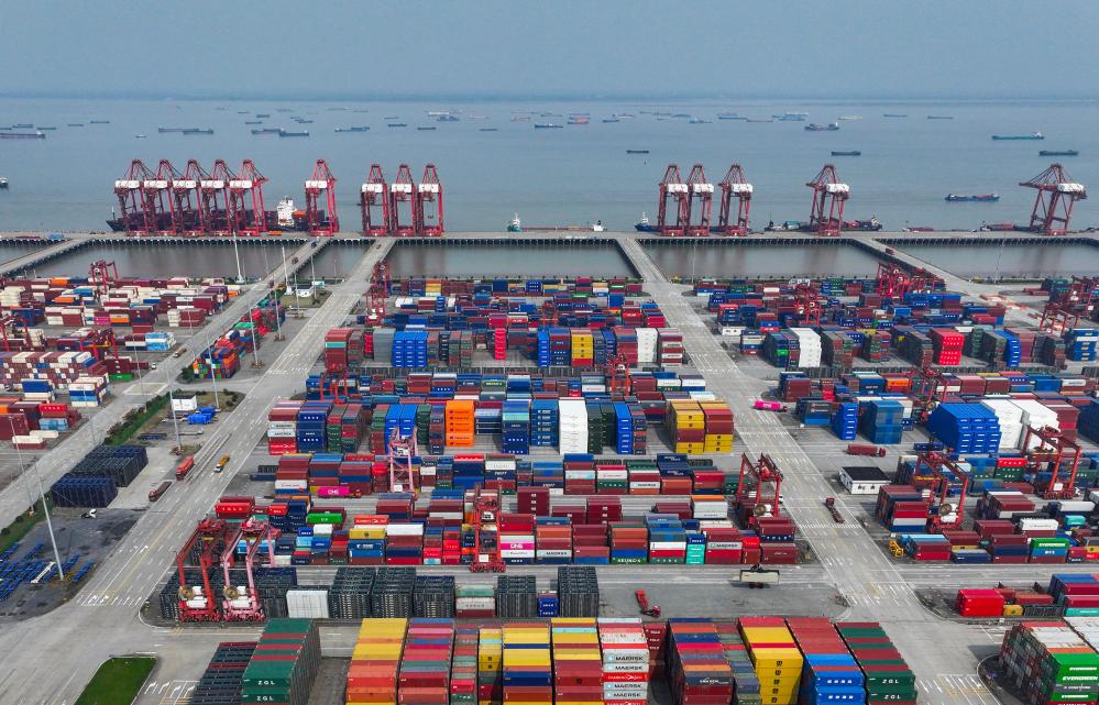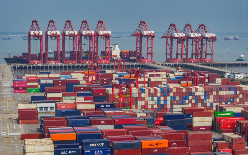 江蘇省蘇州港太倉(cāng)港區(qū)集裝箱碼頭(無(wú)人機(jī)照片,10月10日攝)。新華社記者 李博 攝