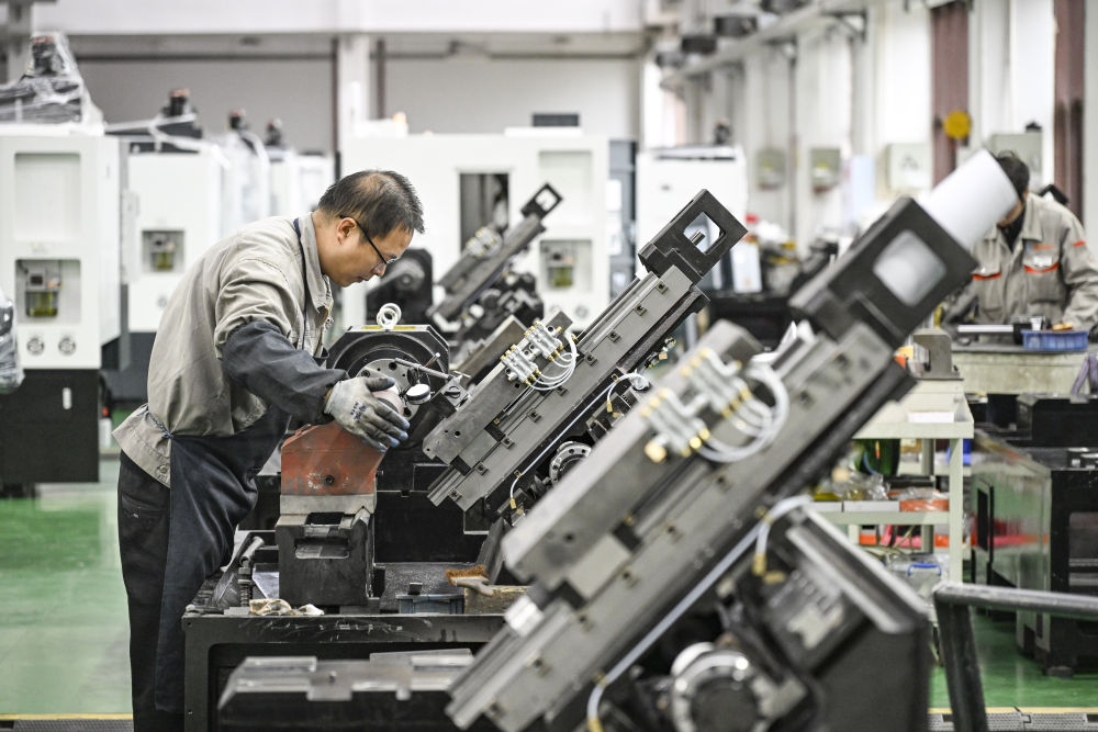 2月22日,工人在重慶宏鋼數控機床有限公司總裝車間作業。新華社記者 王全超 攝