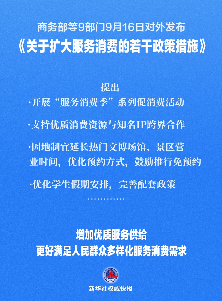 商務部等9部門16日對外發布《關于擴大服務消費的若干政策措施》,提出五方面19條舉措進一步擴大服務消費。