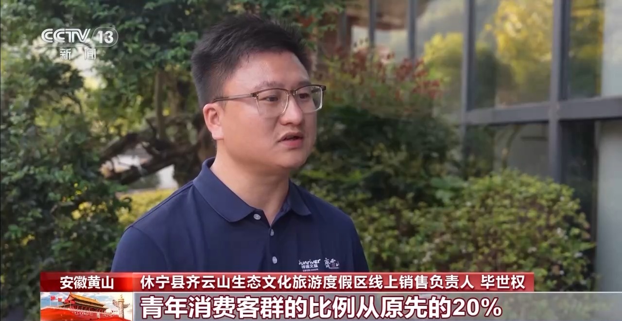 黃山市休寧縣齊云山文化旅游度假區線上銷售負責人 畢世權:從數據來看,青年消費客群的比例從原先的20%,提升到現在45%左右,同時也刺激了我們景區的二次消費和復購率,也提升了整體的口碑。
