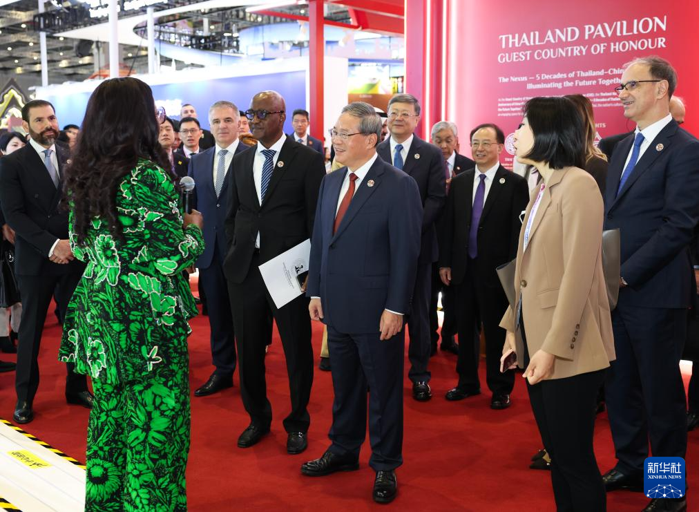 開幕式前,李強參觀了企業展。開幕式后,李強同與會外國領導人共同巡館。