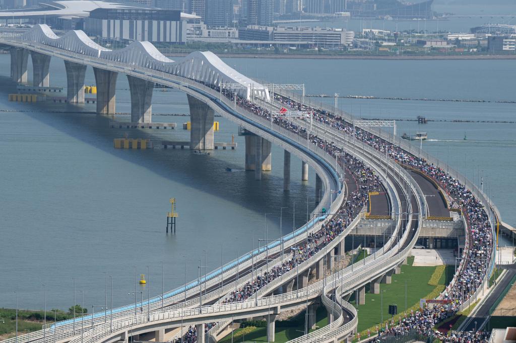 2024年9月29日,市民在澳門大橋上參與健步行。