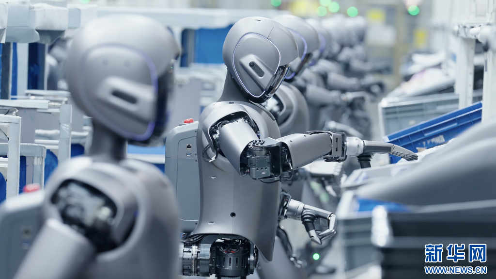 數十臺人形機器人在工廠“實訓”。