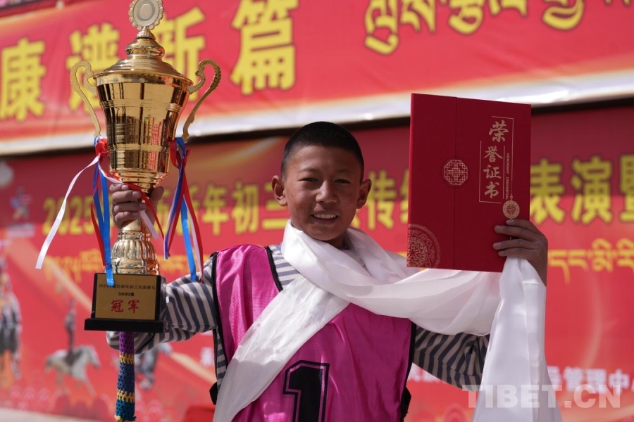 來自西藏那曲的14歲小伙扎西仁青在民族賽馬5000米中獲得冠軍,他說:“我從5歲開始在爸爸的帶領下騎馬并愛上賽馬,我參加過很多比賽,也取得過很多次優異的成績。這次很榮幸能夠來拉薩參加比賽,這個成績我很滿意。今后我會努力學習,加強鍛煉,繼續參加更多的比賽。”扎西仁青的爸爸曾多次參加過民族賽馬活動,他把自己豐富的賽馬經驗傳授給兒子,經過父子倆近十年的不懈努力,讓現在的扎西仁青練就了一身賽馬技巧與膽識。這本就是一場民族文化在馬背上傳承的故事。