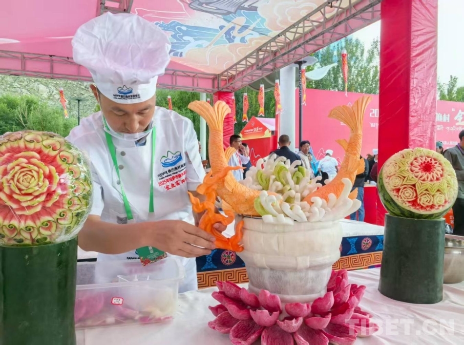 大賽裁判長、自治區烹飪餐飲飯店業協會會長褚立群介紹,本次大賽面向各類餐飲企業、美食烹飪愛好者及各縣區農家樂經營主體開放,精心設置了非遺文化展示和全魚宴制作兩個環節,要求參賽團隊以西藏當地食材創新運用為先,優先選取曲水縣特有魚類、高原特色雜糧、高原時令蔬果等傳統食材,突出健康飲食理念,倡導可持續來源食材使用,踐行“綠色餐飲”發展理念,實現美味、健康、環保的有機結合。同時,鼓勵團隊將西藏美食與援藏省(市)傳統特色美食融合,打造兼具西藏地域特色的多元菜品。