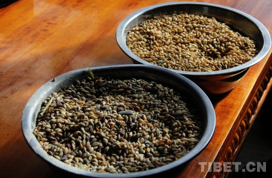 圖為文布南村產出的兩種青稞 攝影:趙釗