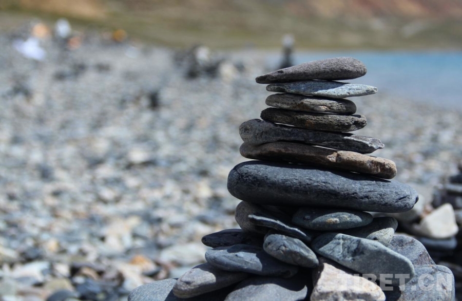 圖為當惹雍錯岸邊的瑪尼石堆 攝影:趙釗