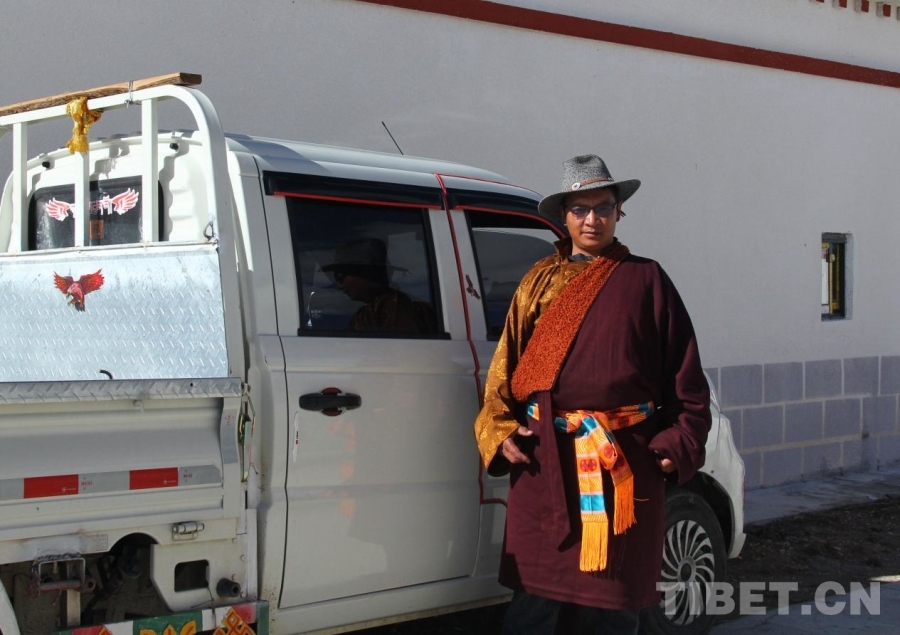 圖為那曲牧民尼瑪站在自己去年新買的車前 攝影:趙釗