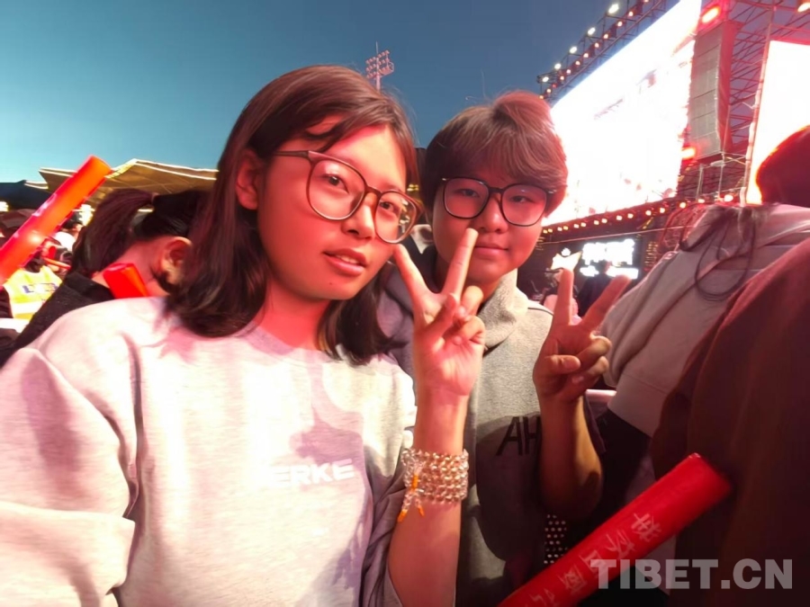 在她身旁的是兩位來自西藏大學的學生——米瑪倉覺和她的朋友旦增措姆。她們在接受采訪時表示,如今拉薩這類文化活動越來越多,只要有空她們就會參加。“這樣的場合不僅能見到喜歡的歌手,也讓我們在校園生活之外學到新東西,我們非常喜歡。”米瑪倉覺說道。