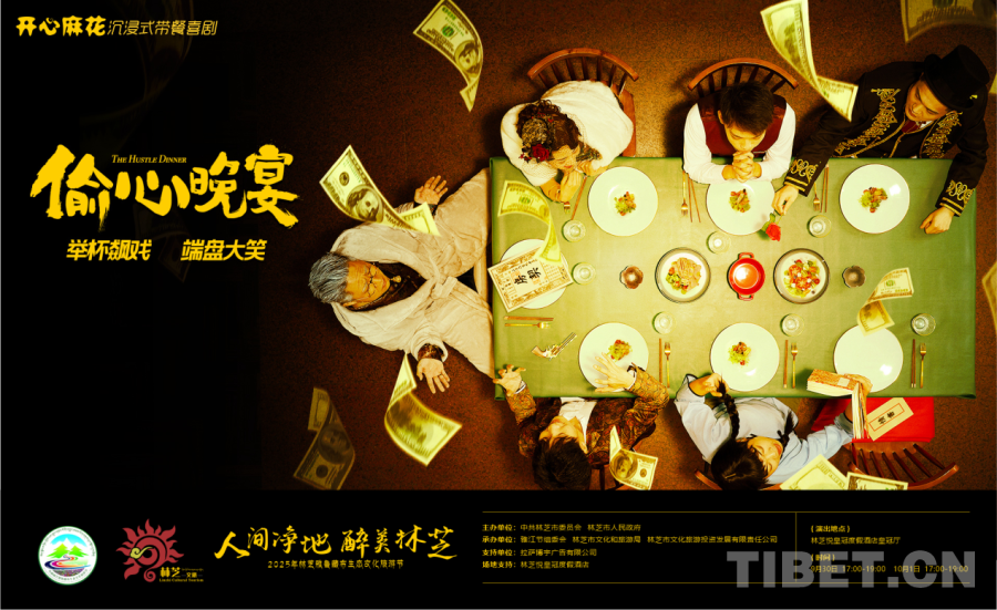 中國西藏網訊 當喜劇藝術邂逅高原風情,一場別開生面的文化盛宴在林芝精彩上演。9月30日晚,開心麻花沉浸式互動喜劇《偷心晚宴》在西藏林芝完成首演,為2025雅魯藏布生態文化旅游節增添了一抹亮色,也標志著林芝文旅融合邁出新步伐。