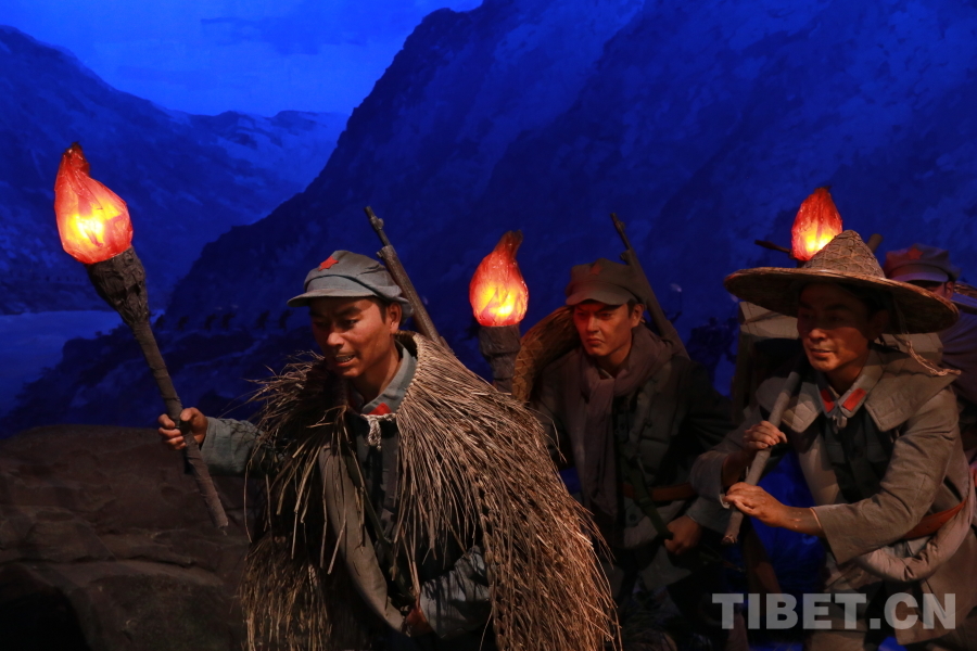 圖為紅軍飛奪瀘定橋紀念館內部的紅軍夜行軍的模型場景 攝影:王妍丹