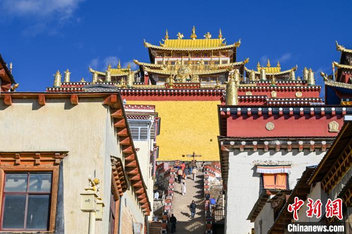 圖為游客在噶丹松贊林寺內觀光。中新社記者 李嘉嫻 攝