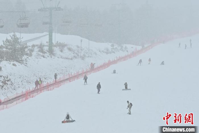 3月2日,云南省迪慶藏族自治州香格里拉市迎來降雪,滑雪愛好者在香格里拉七星雪滑雪場暢享雪域高原冰雪運動魅力。