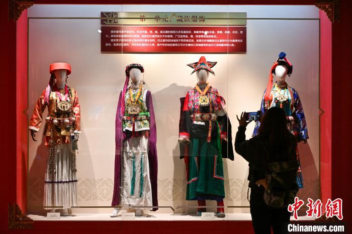 3月1日,迪慶藏族自治州博物館內展出的藏族女性服飾吸引游客拍照。李嘉嫻 攝