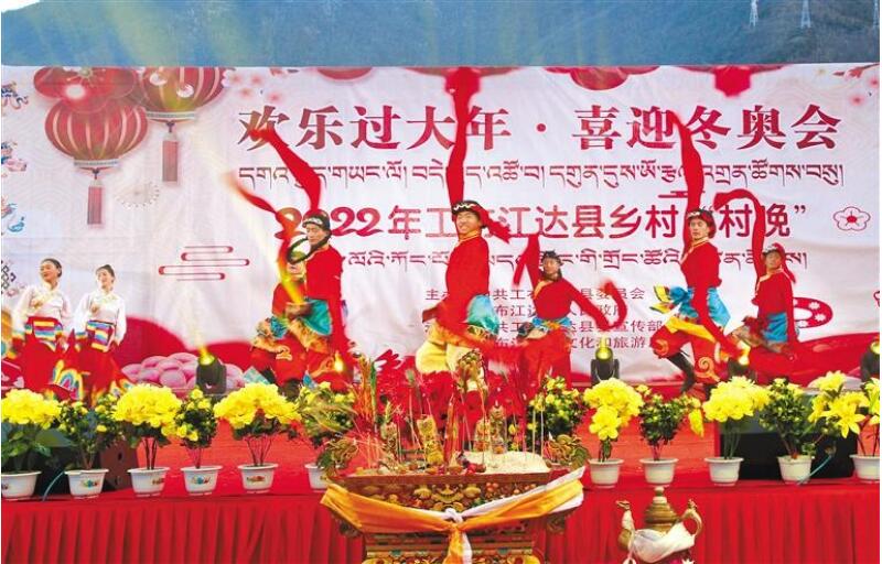 林芝市工布江達縣2022年“歡樂過大年·喜迎冬奧會——我們的美好生活”聯歡活動日前在工布江達鎮阿沛村精彩上演。記者 胡文 王珊 攝