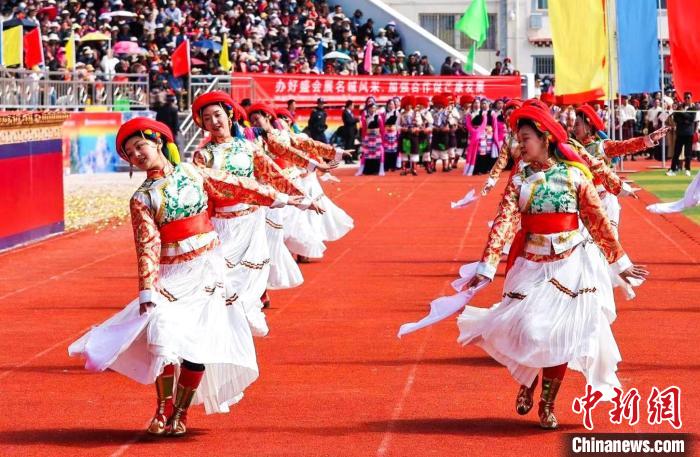 圖為西藏昌都市第九屆三江茶馬文化藝術節(芒康會場)開幕式現場。昌都市芒康縣委宣傳部供圖