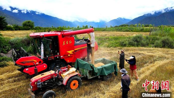 金秋將至,西藏各地陸續開始進入秋糧收獲期。在海拔和水熱條件較好的林芝市米林縣羌納鄉,連片青稞小麥已經成熟,并率先開始收割。