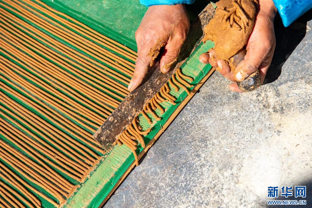 10月17日,西藏拉薩市尼木縣吞巴鎮(zhèn)吞達村縣級非遺傳承人普布次仁在制作藏香。新華網(wǎng) 旦增努布 攝