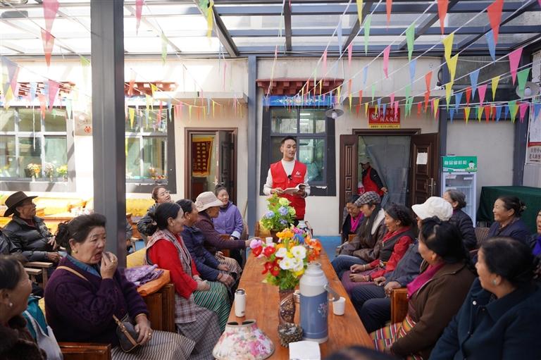 這樣熱鬧的學(xué)習(xí)場(chǎng)景,源于一份精準(zhǔn)適配的“老年興趣菜單”,策門林老年日間照料中心每日開(kāi)設(shè)兩節(jié)知識(shí)普及與技能培訓(xùn)課,內(nèi)容涵蓋文學(xué)閱讀、藏文教學(xué)等知識(shí)類課程,瑜伽、民歌、朗瑪堆諧等文體課程,還有安全知識(shí)科普等實(shí)用內(nèi)容,從“滋養(yǎng)精神”到“強(qiáng)健身體”,全方位覆蓋老人需求。